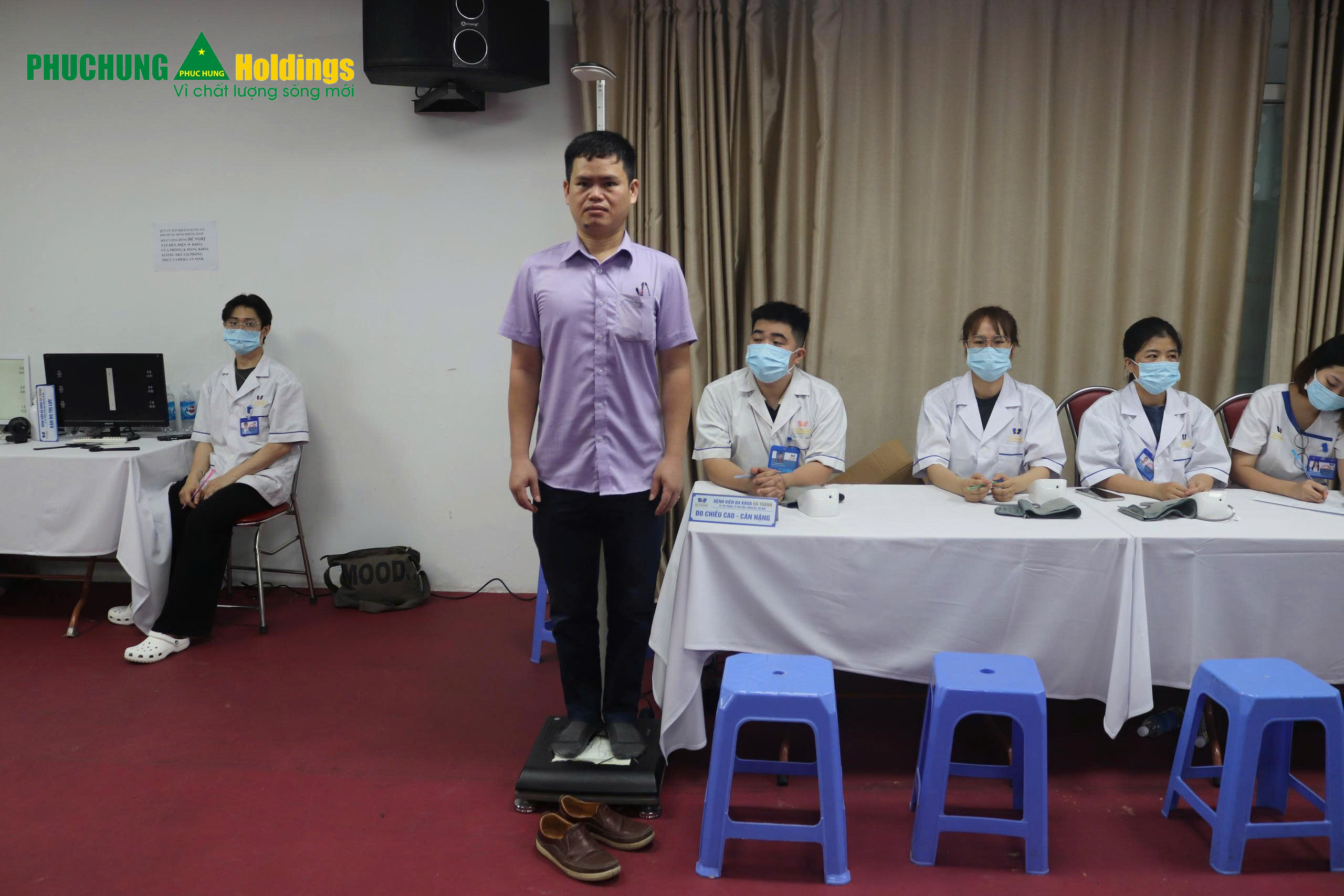 Người lao động được kiểm tra đo chiều cao, cân nặng, huyết áp trước khi khám chuyên khoa