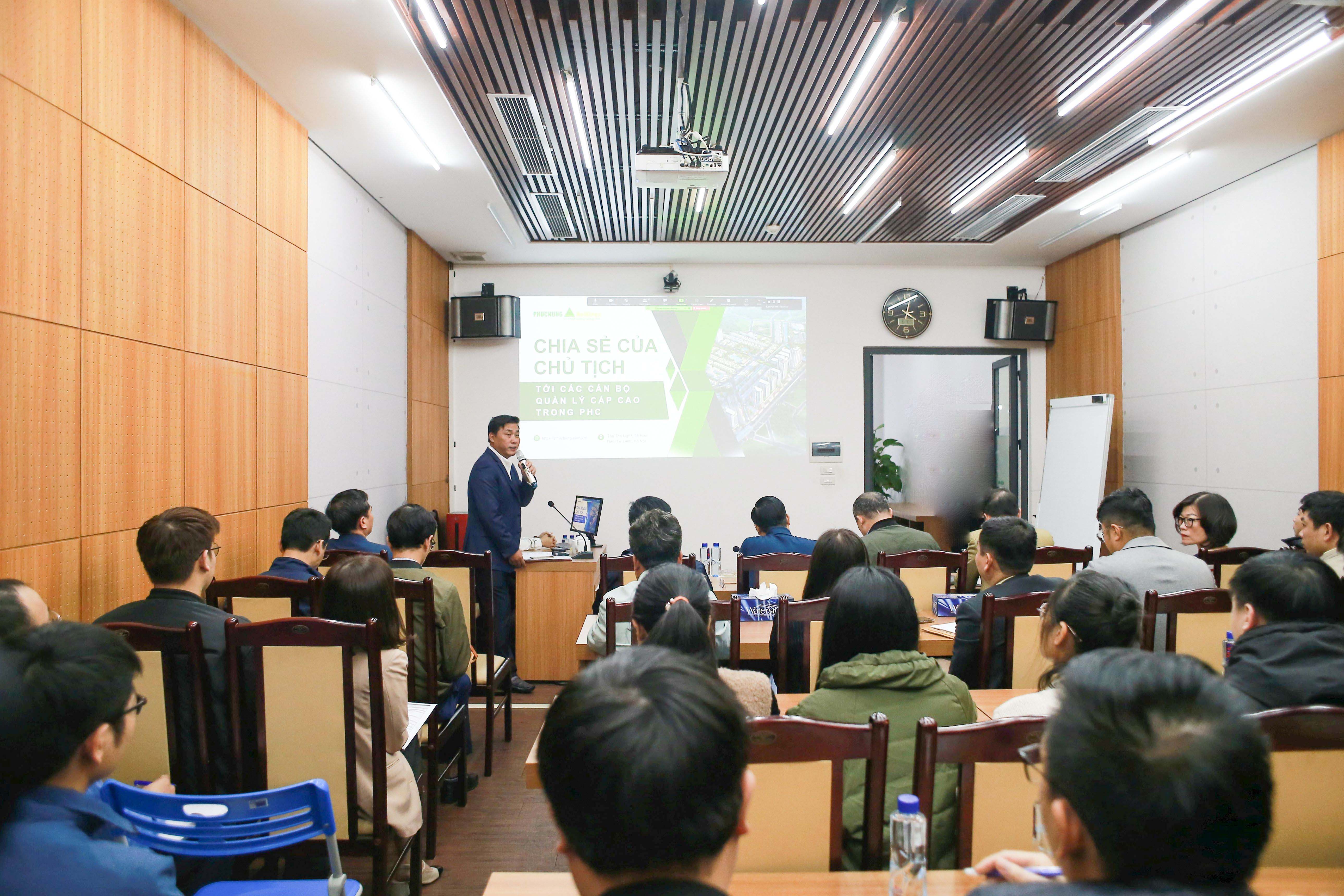 Với kinh nghiệm nhiều năm làm quản lý và sự tâm huyết, chuyên nghiệp, Chủ tịch HĐQT Cao Tùng Lâm đã chia sẻ những kiến thức về tầm nhìn, sứ mệnh, chiến lược, định hướng phát triển, văn hóa doanh nghiệp của Phục Hưng Holdings cũng như vai trò, tầm quan trọng và những năng lực, kỹ năng cần có của Cán bộ quản lý.