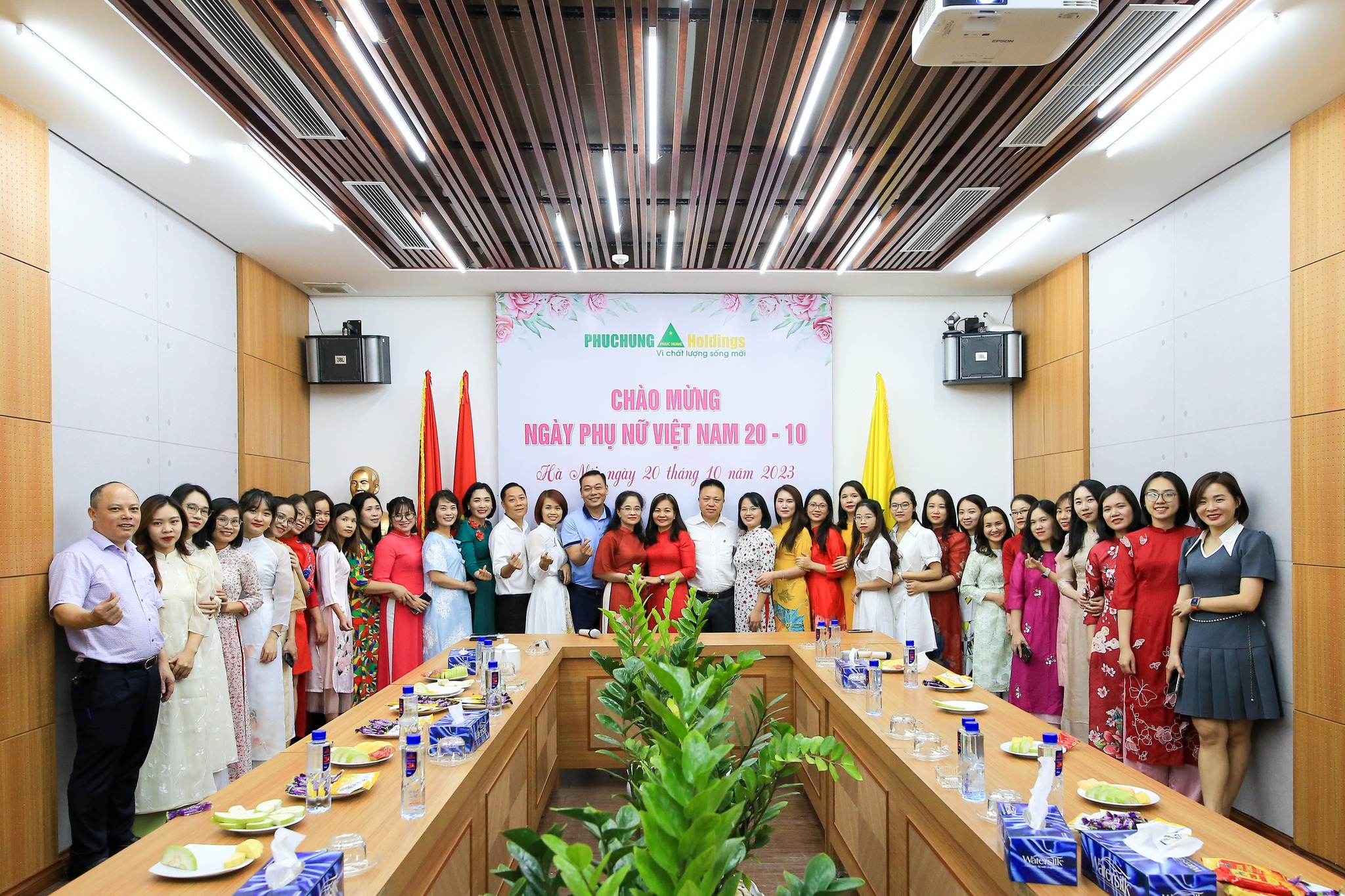 Ban Lãnh đạo & tập thể nữ đoàn viên Phục Hưng Holdings chụp ảnh kỷ niệm tại buổi Lễ