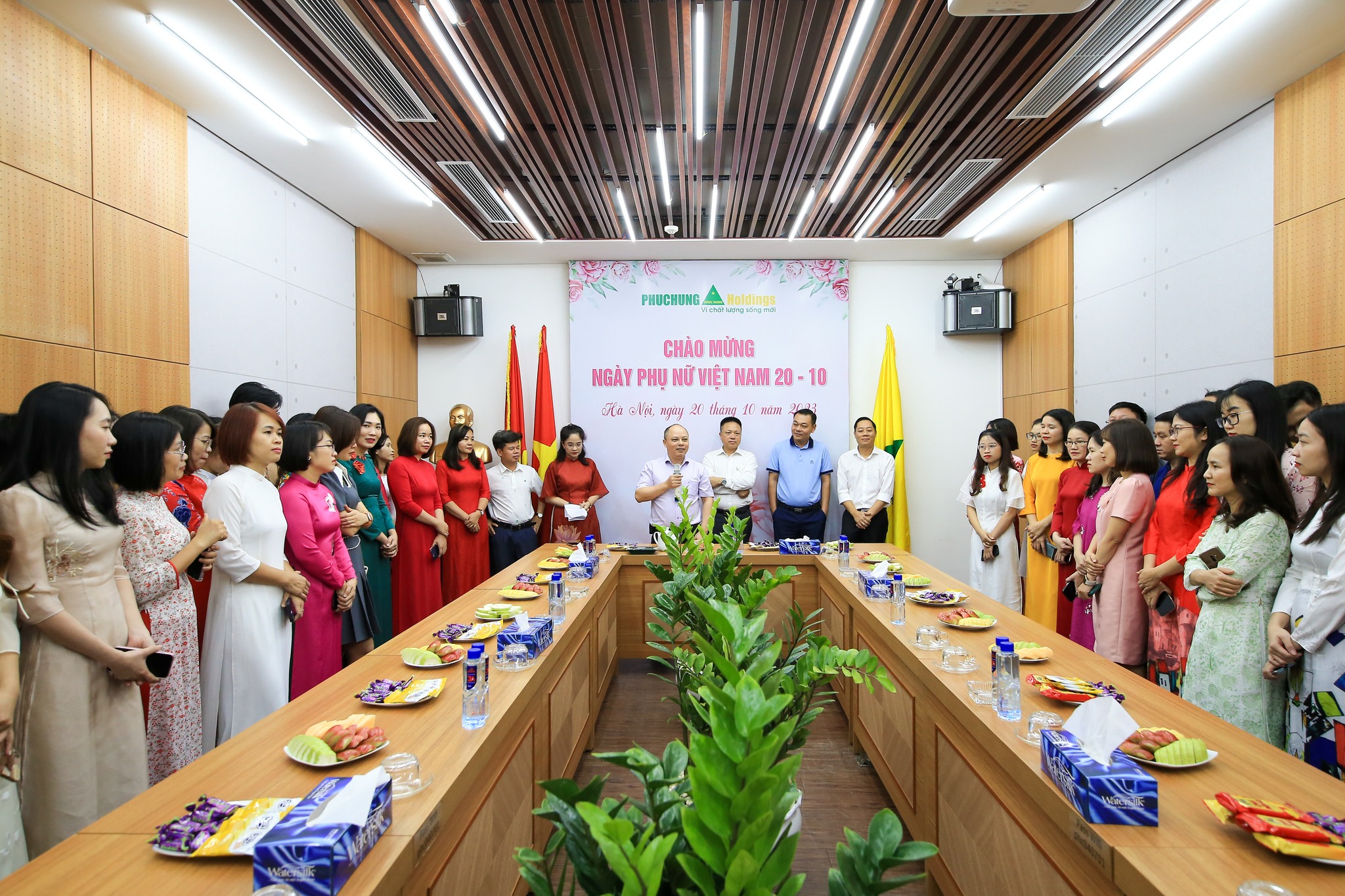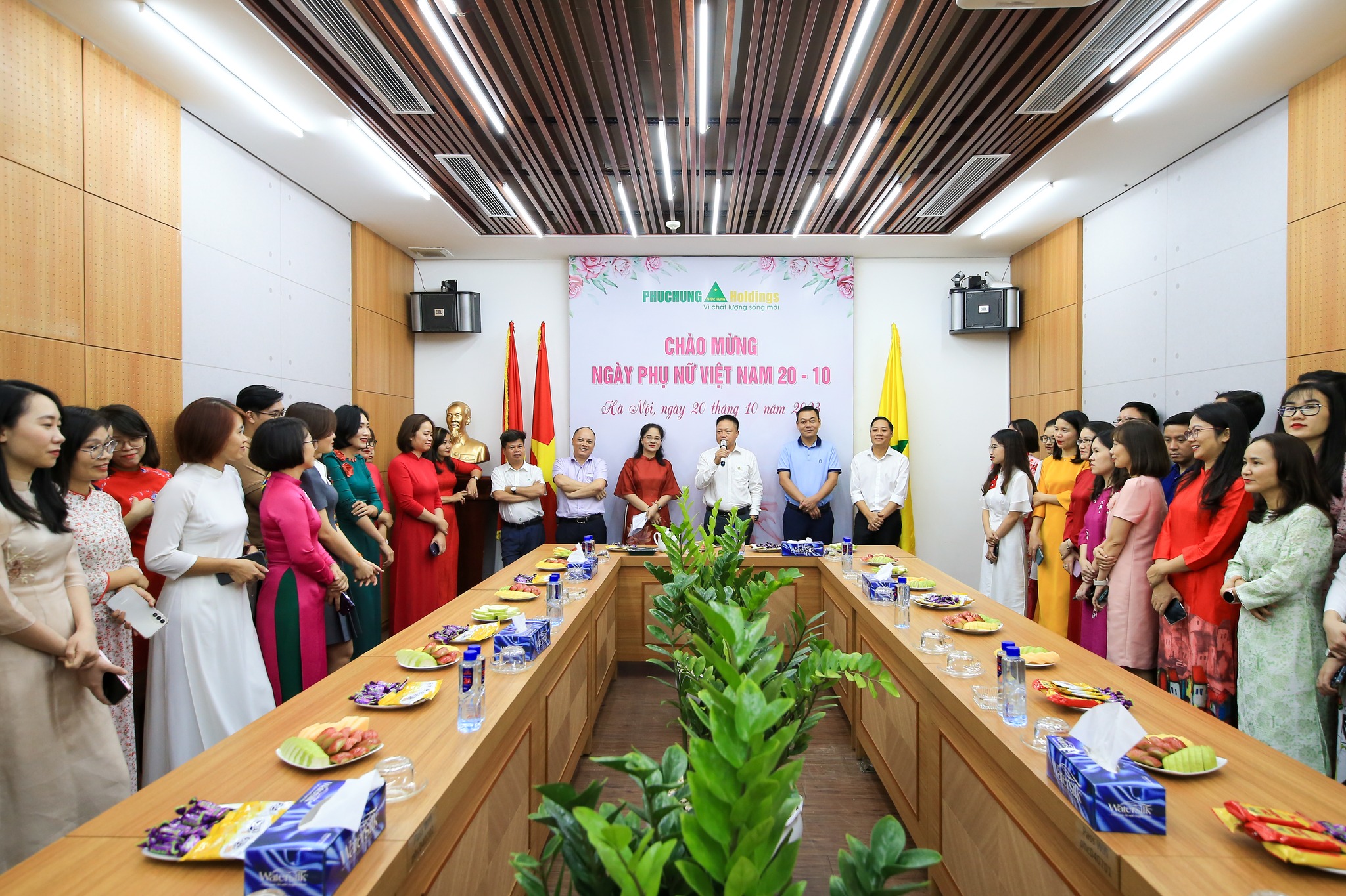 Phát biểu tại buổi lễ, Tổng giám đốc Trần Hồng Phúc chúc mừng, ghi nhận và đánh giá cao những nỗ lực, cố gắng của tập thể nữ đoàn viên Phục Hưng Holdings đã đạt được trong thời gian qua, đồng thời, mong muốn thời gian tới, các chị em cán bộ nhân viên sẽ tiếp tục phát huy tinh thần, trí tuệ và tâm huyết của mình, hoàn thành tốt nhiệm vụ được giao, luôn là người “xây tổ ấm”, là sợi dây kết nối yêu thương, vun đắp hạnh phúc trong mỗi gia đình.