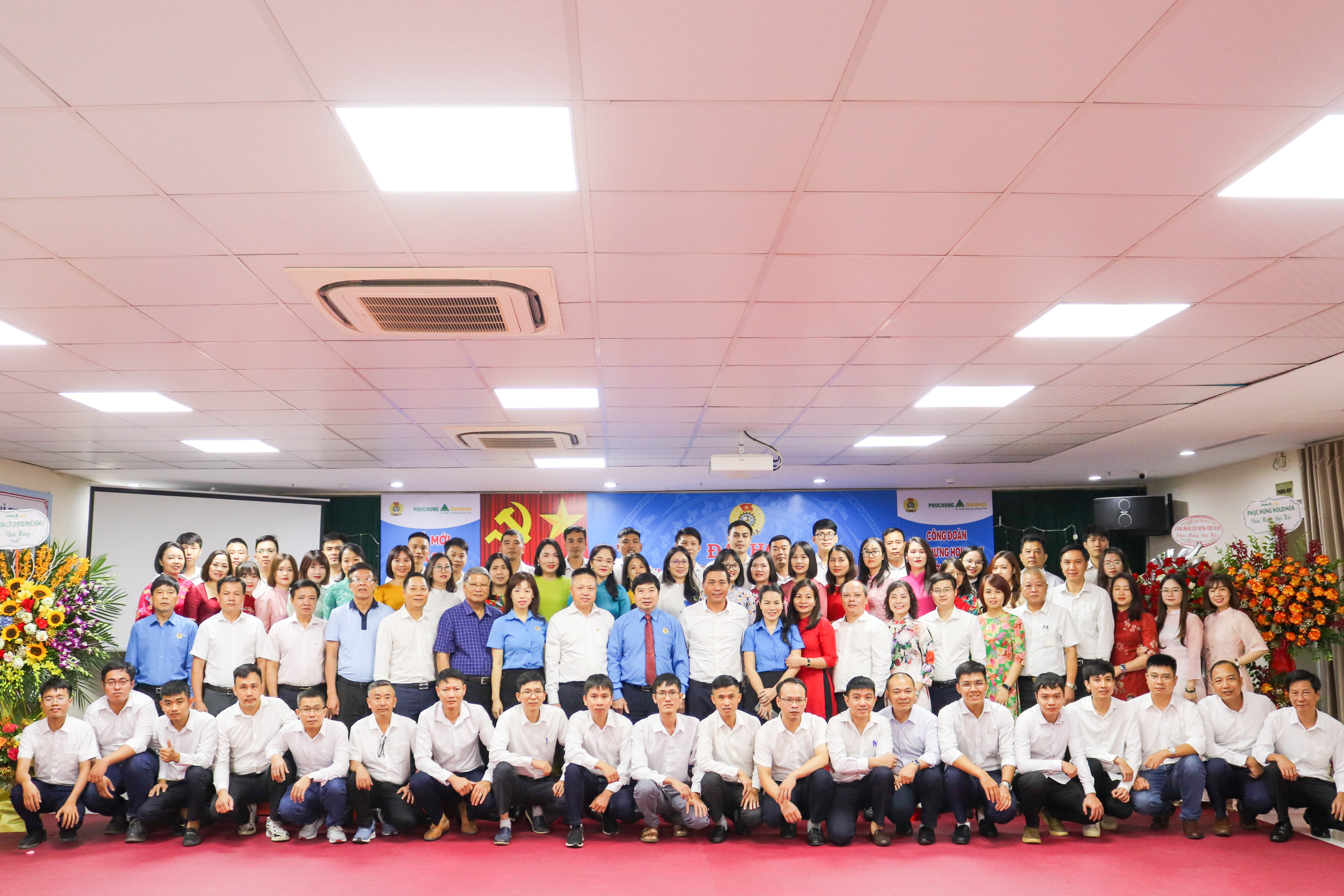 Các đồng chí lãnh đạo, đại biểu ưu tú được triệu tập từ các công đoàn cơ sở trực thuộc Công đoàn Phục Hưng Holdings chụp ảnh lưu niệm