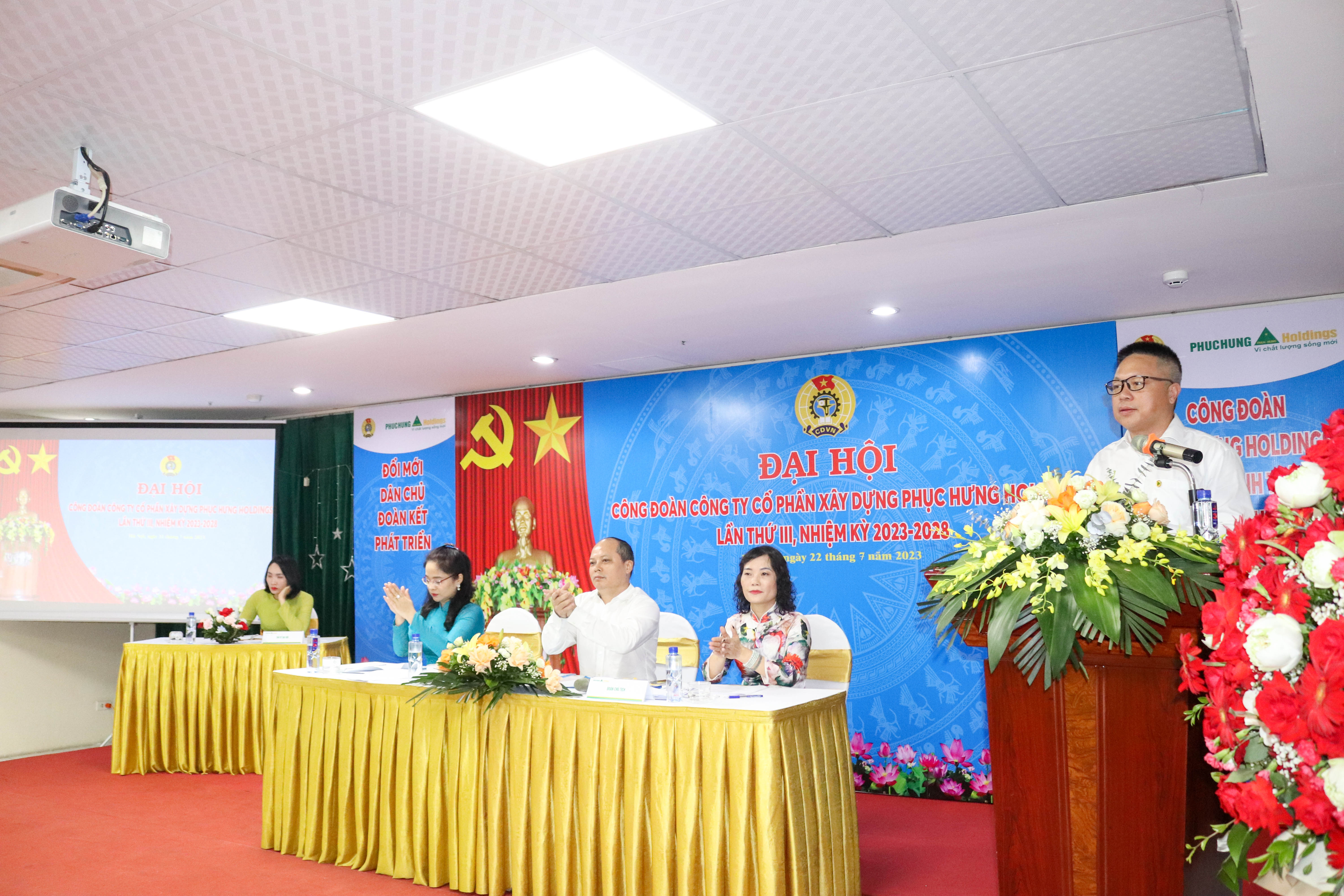 Thay mặt Chi ủy, Hội đồng quản trị, Ban lãnh đạo công ty, đồng chí Cao Tùng Lâm – Bí thư Chi bộ, Chủ tịch Hội đồng quản trị đề nghị tổ chức Công đoàn cùng toàn thể cán bộ, đoàn viên, người lao động Phục Hưng Holdings tiếp tục bám sát mục tiêu tổng quát nhiệm kỳ 2023 - 2028 "CÔNG ĐOÀN PHỤC HƯNG HOLDINGS: “NƠI KẾT TINH TRÍ TUỆ - NƠI CHIA SẺ YÊU THƯƠNG’’ - kết tinh những trí tuệ từ Người Lãnh đạo, đội ngũ cán bộ, kỹ sư đến những người công nhân lao động nhằm tạo nên sức mạnh đoàn kết, trở thành cầu nối để hiểu và giải quyết các vấn đề xung đột giữa người sử dụng lao động và người lao động, cùng nhau sát cánh đưa Công ty thực hiện thắng lợi các mục tiêu, kế hoạch trong những năm tiếp theo.