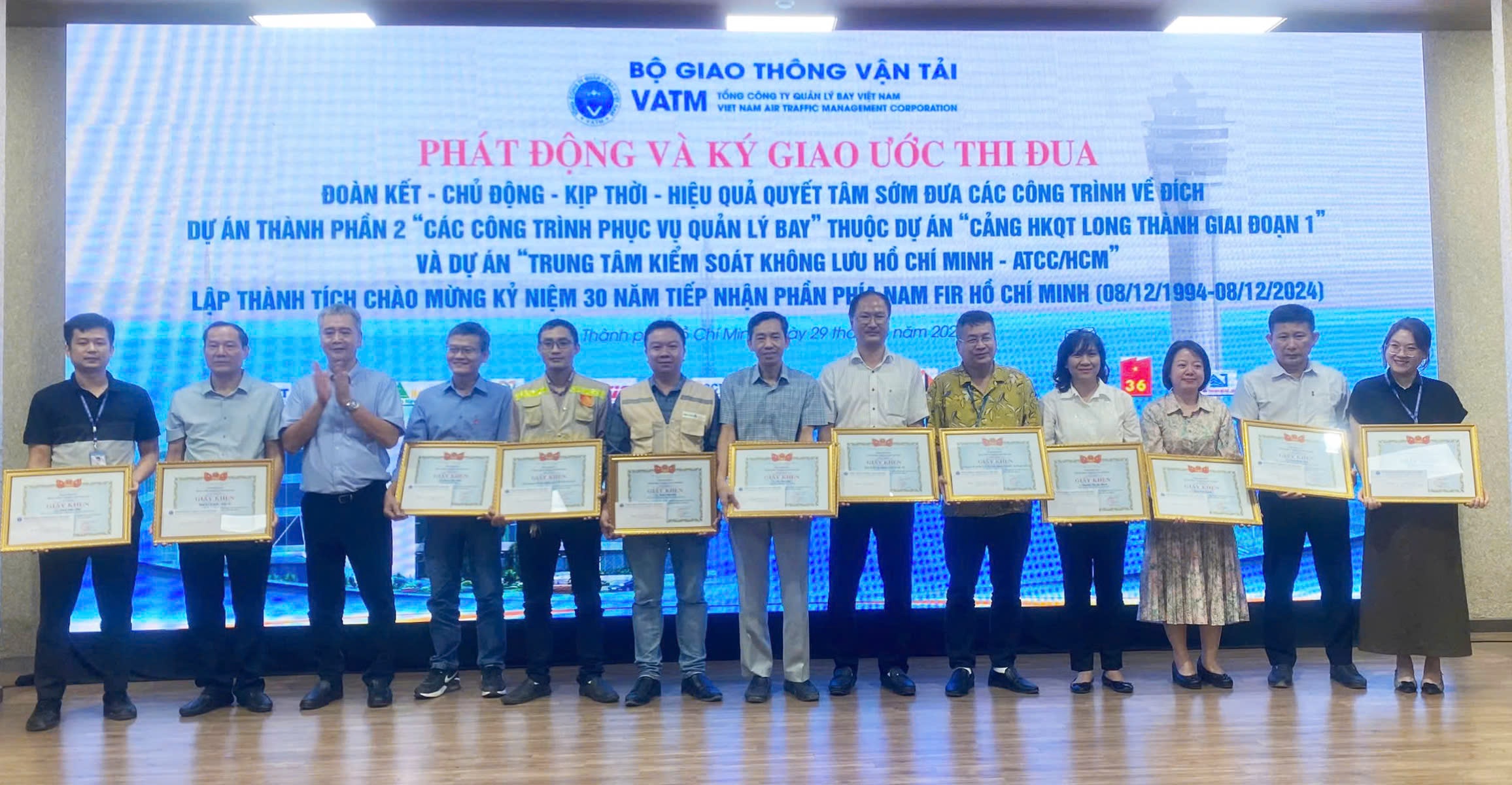 Tổng Công ty Quản lý bay Việt Nam trao Quyết định khen thưởng cho các tập thể và cá nhân có thành tích trong đợt thi đua lần thứ nhất. Nhà thầu Phục Hưng Holdings cất nóc công trình ngày 28/7/2024, sớm 02 tháng so với tiến độ của hợp đồng
