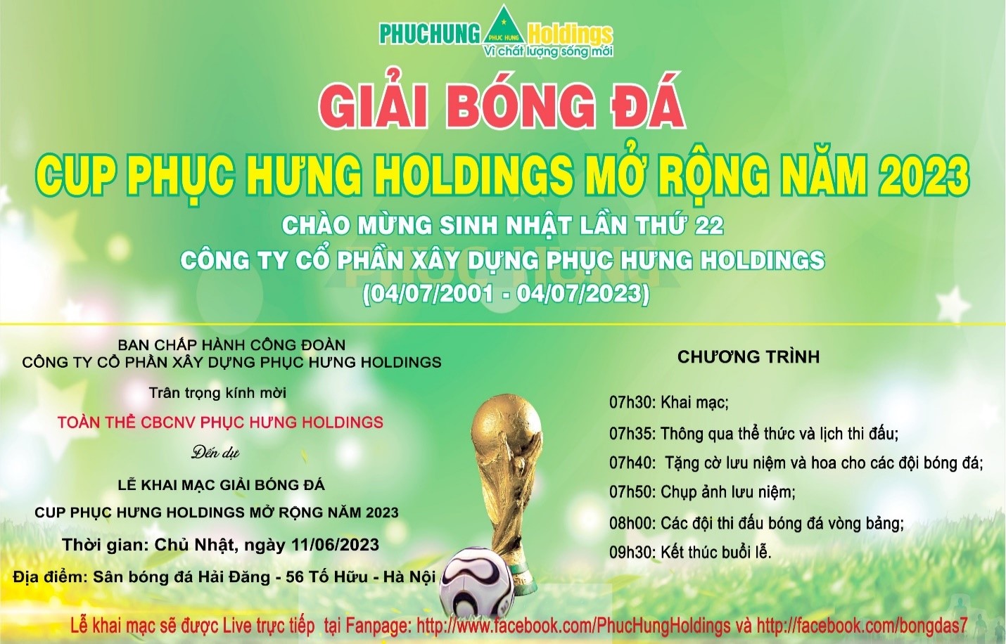 Được phát trực tiếp (live) trên Fanpage https://www.facebook.com/PhucHungHoldings và http://facebook.com/bongdas7;