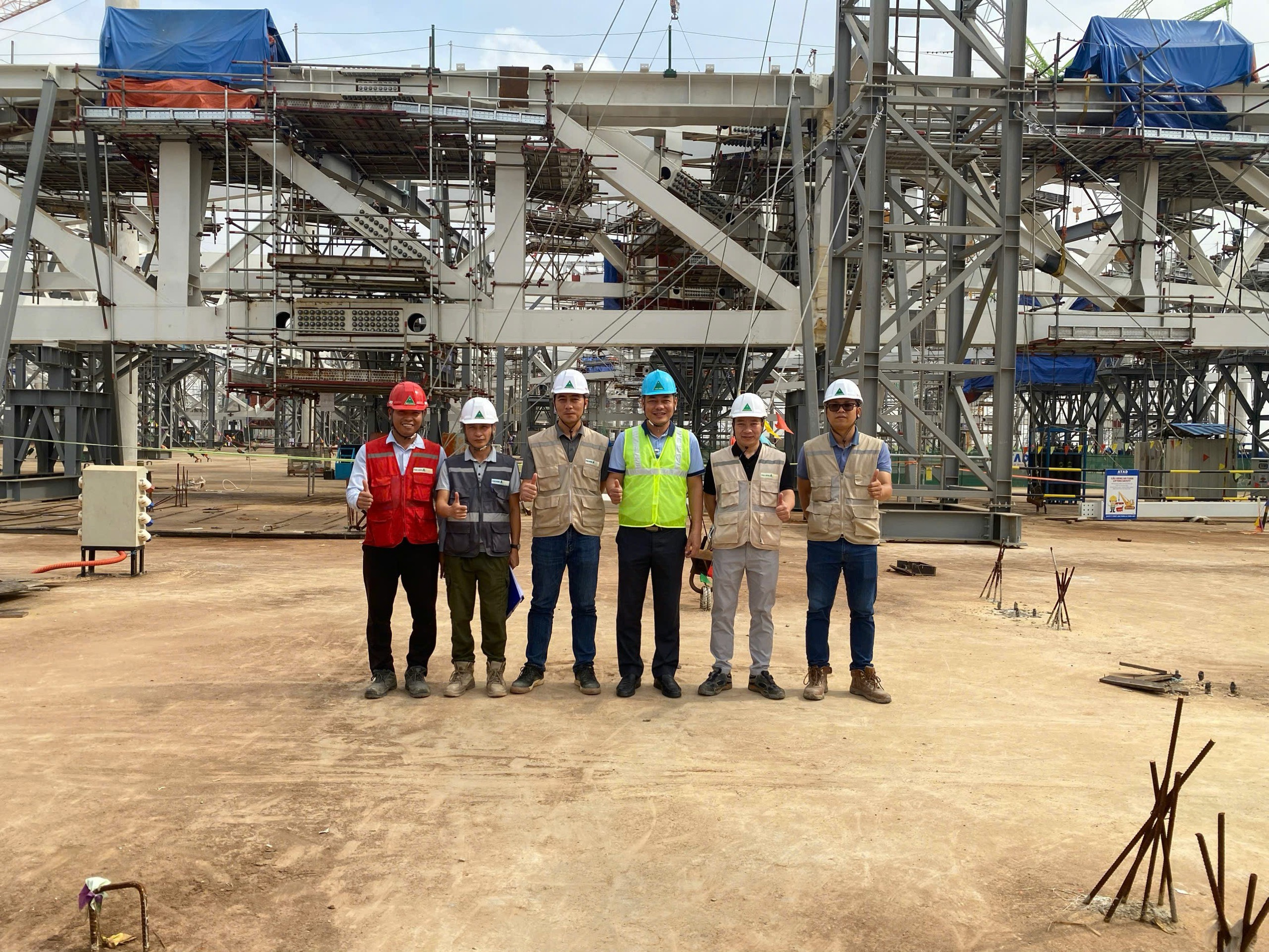 Phó Tổng giám đốc Lê Quốc Tuấn (thứ 3 từ phải sang) chụp ảnh lưu niệm cùng Ban chỉ huy sau khi kiểm tra công trường