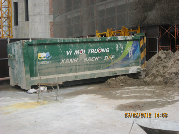 Rác thải được thu gom vào thùng chuyên dụng và chuyển đi hàng ngày