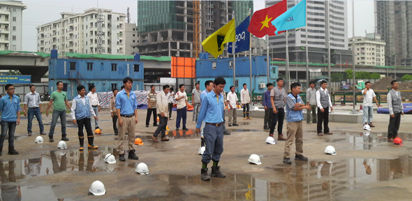 Khi đến thăm quan dự án Trung tâm điều hành và giao dịch Vicem, điều đầu tiên chúng tôi cảm nhận được là không khí lao động tích cực của tập thể cán bộ/nhân viên Liên danh trên công trường.